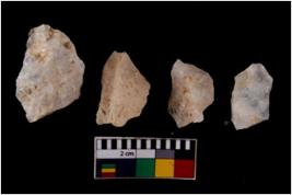 | Description / विवरण | There are n 4 flake cores. All of them are fully fluted flake cores without any trace of crested ridge flakes. Some are tapering at one end and some have blunted edges. |