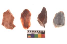 | Description / विवरण | There are n 04 of utilized worked flakes. They show multi-directional irregular scar pattern. Three of them are tapering on one end. |