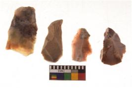 | Description / विवरण | There are n 04 of utilized worked flakes. They show multi-directional irregular scar pattern. Three are tapering on one end. |