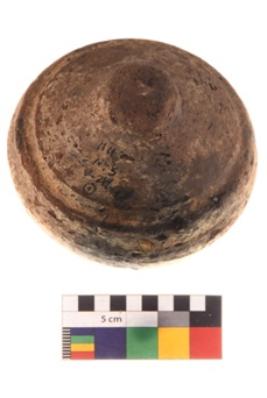 | Description / विवरण | Specimen of red ware decorative lid with a knob. |
