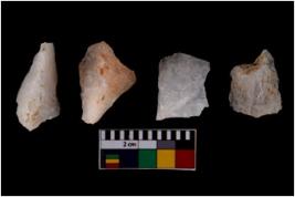 | Description / विवरण | There are n 4 flake cores. All of them are fully fluted flake cores without any trace of crested ridge flakes. Some are tapering at one end and some have blunted edges. |