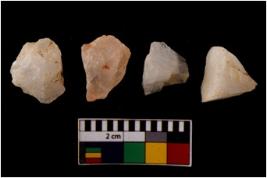 | Description / विवरण | There are n 4 flake cores. All of them are fully fluted flake cores without any trace of crested ridge flakes. Some have flat base. Some have blunted edges and some have round edges. |