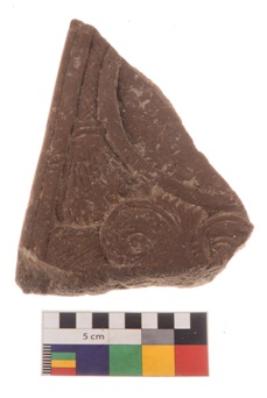 | Description / विवरण | A specimen of broken stone fragment showing floral decoration. |