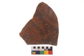 | Description / विवरण | Specimen of black on red ware with decorative geometric Fifh motif painting. |