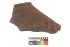 | Description / विवरण | Specimen of potsherd with traces of decorative geometric painting, Type Black on Red ware . |