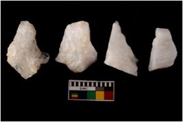 | Description / विवरण | There are n 4 flake cores. All of them are fully fluted flake cores without any trace of crested ridge flakes. Some are tapering at one end and some have sharp edges. |