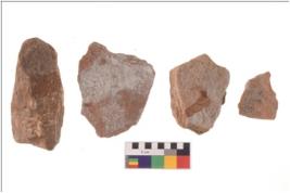 | Description / विवरण | There are n 4 utilized flakes; there are multi- directional irregular scar pattern on both dorsal and ventral face of the flakes. |