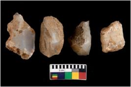 | Description / विवरण | There are n 4 worked utilized flake cores. All of them are fluted without any trace of crested ridge flakes. Most of them are having sharp edges. |