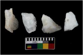 | Description / विवरण | There are n 4 flake cores. All of them are fully fluted flake cores without any trace of crested ridge flakes. Two have flat base whereas some have pointed edges. |