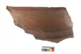 | Description / विवरण | Specimen of potsherd with decorative geometric painting, Type Black on Red ware . |