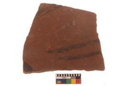 | Description / विवरण | Specimen of black on red ware with decorative geometric parallel lines painting. |