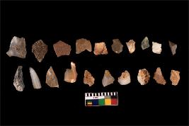 | Description / विवरण | There are n 20 of worked flakes. They have bulge of percussion and some are flat flakes. Few have borken tip. |