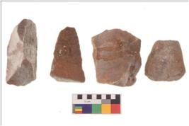 | Description / विवरण | There are n 4 utilized flakes; there are multi- directional irregular scar pattern on both dorsal and ventral face of the flakes. |