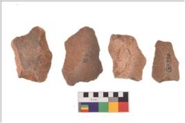 | Description / विवरण | There are n 4 utilized flakes; there are multi- directional irregular scar pattern on both dorsal and ventral face of the flakes. Most of them are having sharp edges. |