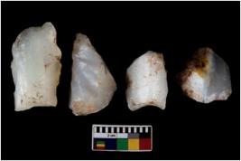 | Description / विवरण | There are n 4 worked utilized flake cores. All of them are fluted without any trace of crested ridge flakes. Most of them are having sharp edges. |