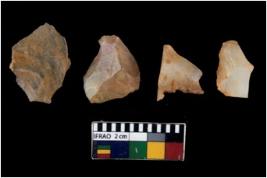 | Description / विवरण | There are n 4 of utilized worked cores. They show multidirectional irregular scar pattern. One is tapering at one end. |