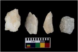 | Description / विवरण | There are n 4 flake cores. All of them are fully fluted flake cores without any trace of crested ridge flakes. Two have flat base whereas some have pointed edges. |