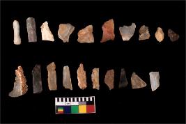 | Description / विवरण | There are n 20 of intact flakes. They have bulge of percussion and few are flat flakes. Some are tapering at one end and are elonagted in shape. |