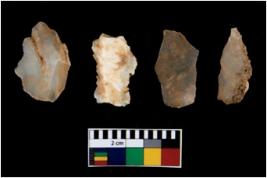 | Description / विवरण | There are n 4 of utilized worked cores. They show multidirectional irregular scar pattern. Three is tapering at one end. |