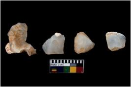 | Description / विवरण | There are n 4 of utilized worked cores; one is of chacedony and three of quartz. They show multidirectional irregular scar pattern. Two are tapering at one end . One is having sharp edges whereas three are blunt. |