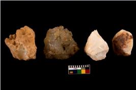 | Description / विवरण | There are n 4 of utilized worked cores. There are multidirectional irregular dominant scar pattern on both dorsal and ventral side. They have sharp edges. Three of chalcedony and one of quartz. |