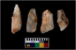 | Description / विवरण | There are n 4 of utilized worked cores. They show multidirectional irregular scar pattern. All are tapering at one end and are elongated in shape. All are having sharp edges. |