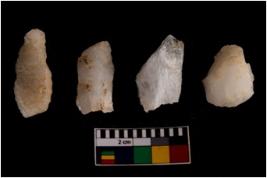 | Description / विवरण | There are n 4 flake cores. All of them are fully fluted flake cores without any trace of crested ridge flakes. Some are tapering at one end and some have sharp edges. |