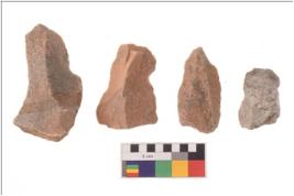 | Description / विवरण | There are n 4 utilized flakes; there are multi- directional irregular scar pattern on both dorsal and ventral face of the flakes. |