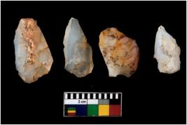 | Description / विवरण | There are n 4 of utilized worked cores. They show multidirectional irregular scar pattern. Three are tapering at one end and are elongated in shape. All are having sharp edges. |