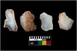| Description / विवरण | There are n 4 of utilized worked cores. They show multidirectional irregular scar pattern. Three are tapering at one end and are elongated in shape. |