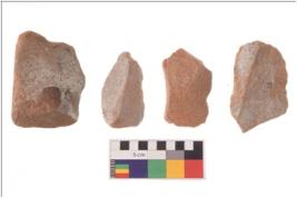 | Description / विवरण | There are n 4 utilized flakes; there are multi- directional irregular scar pattern on both dorsal and ventral face of the flakes. |