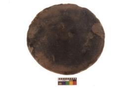 | Description / विवरण | Specimen of red ware terracotta lid with knob, it has a flat base.It has become blaskish due to extensive firing. |