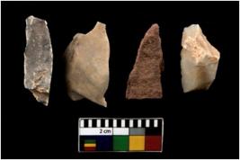 | Description / विवरण | There are n 4 of utilized worked cores; of which three are of chalcedony and one is of sandstone. They show multidirectional irregular scar pattern and are tapering at one end. |