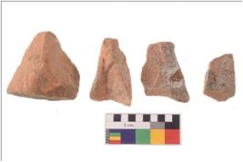 | Description / विवरण | There are n 4 utilized flakes; there are multi- directional irregular scar pattern on both dorsal and ventral face of the flakes. |
