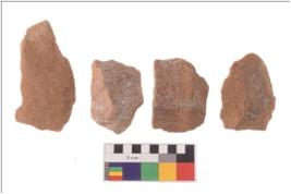 | Description / विवरण | There are n 4 utilized flakes; there are multi- directional irregular scar pattern on both dorsal and ventral face of the flakes. |
