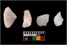 | Description / विवरण | There are n 4 flake cores. All of them are fully fluted flake cores without any trace of crested ridge flakes. Some are tapering at one end and few have sharp edges. |