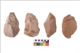 | Description / विवरण | There are n 4 utilized flakes; there are multi- directional irregular scar pattern on both dorsal and ventral face of the flakes. |