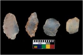 | Description / विवरण | There are n 4 of utilized worked cores. They show multidirectional irregular scar pattern. Two are tapering at one end and are elongated in shape. All are having sharp edges. |