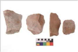 | Description / विवरण | There are n 4 utilized flakes; there are multi- directional irregular scar pattern on both dorsal and ventral face of the flakes. |
