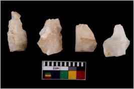| Description / विवरण | There are n 4 flake cores. All of them are fully fluted flake cores without any trace of crested ridge flakes. Some have flat base. Few have sharp edges whereas some have round edges. |