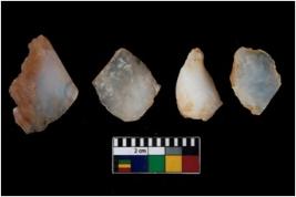 | Description / विवरण | There are n 4 of utilized worked cores. They show multidirectional irregular scar pattern. Three are tapering at one end and are elongated in shape. All are having sharp edges. |