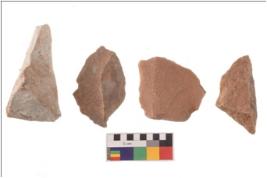 | Description / विवरण | There are n 4 utilized flakes; there are multi- directional irregular scar pattern on both dorsal and ventral face of the flakes. |
