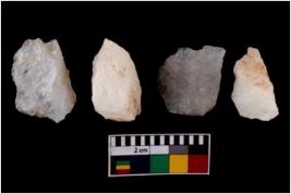 | Description / विवरण | There are n 4 flake cores. All of them are fully fluted flake cores without any trace of crested ridge flakes. Some have flat base. Few have sharp edges whereas some have round edges. |