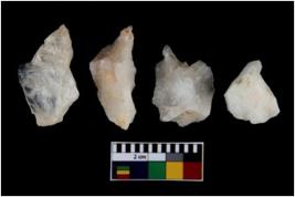 | Description / विवरण | There are n 4 flake cores. All of them are fully fluted flake cores without any trace of crested ridge flakes. Two have flat base whereas some have pointed edges. |