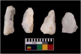 | Description / विवरण | There are n 4 flake cores. All of them are fully fluted flake cores without any trace of crested ridge flakes. Some are tapering at one end and few have sharp edges. |