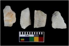| Description / विवरण | There are n 4 flake cores. All of them are fully fluted flake cores without any trace of crested ridge flakes. Two have flat base whereas some have pointed edges. |