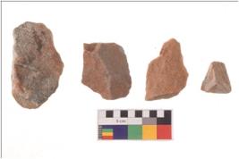 | Description / विवरण | There are n 4 utilized flakes; there are multi- directional irregular scar pattern on both dorsal and ventral face of the flakes. |