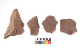 | Description / विवरण | There are n 4 of utilized worked flakes. There are multidirectional irregular dominant scar pattern on both dorsal and ventral face of the flakes. Two of them are tapering at one end. All are having sharp edges. |