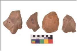 | Description / विवरण | There are n 4 utilized flakes; there are multi- directional irregular scar pattern on both dorsal and ventral face of the flakes. Most of them are having sharp edges. |