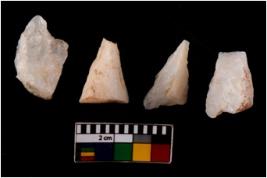 | Description / विवरण | There are n 4 flake cores. All of them are fully fluted flake cores without any trace of crested ridge flakes. Some are tapering at one end and few have sharp edges. |